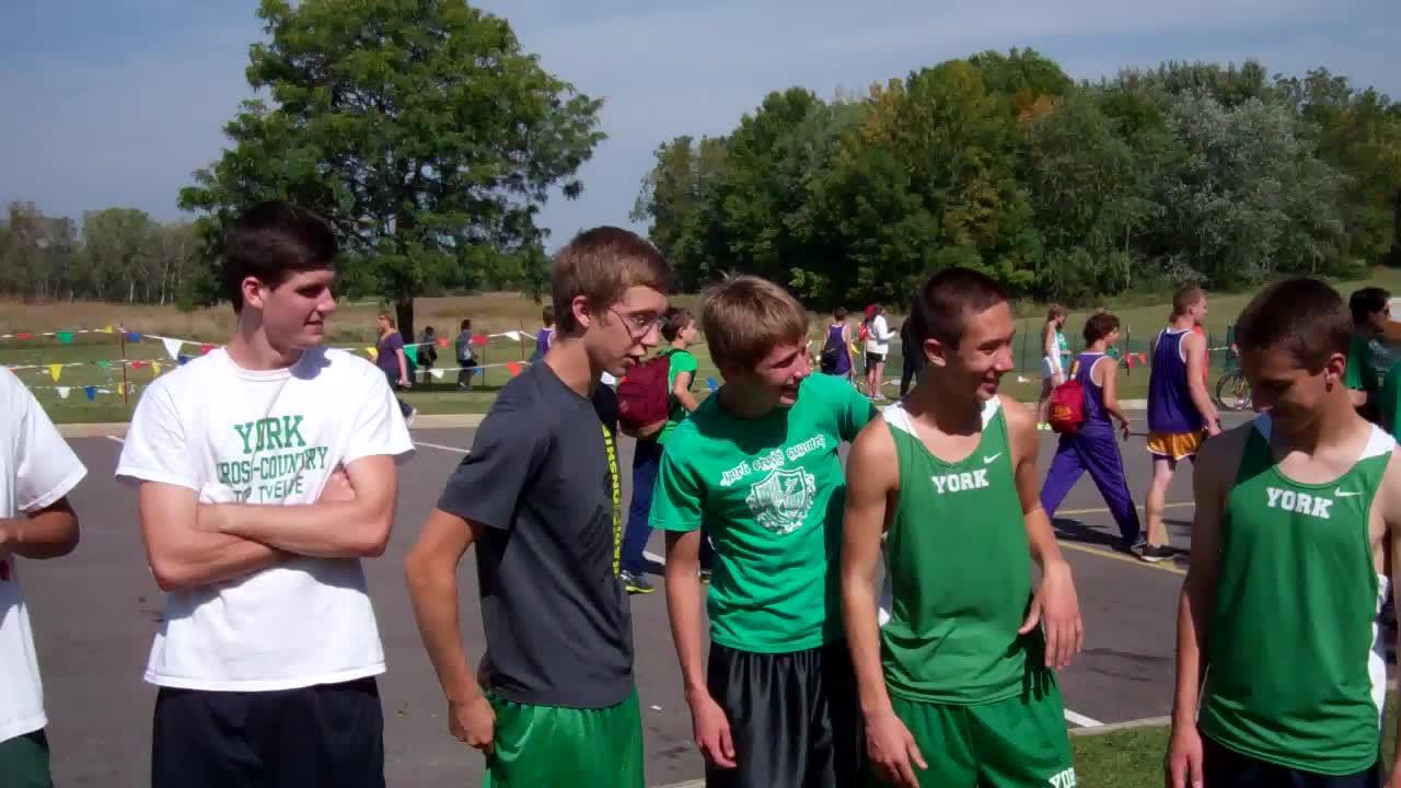 Mike Newman talks to Haley Albers of Downers Grove South HS after her win at the Naperville Invitational - September 27, 2013.
